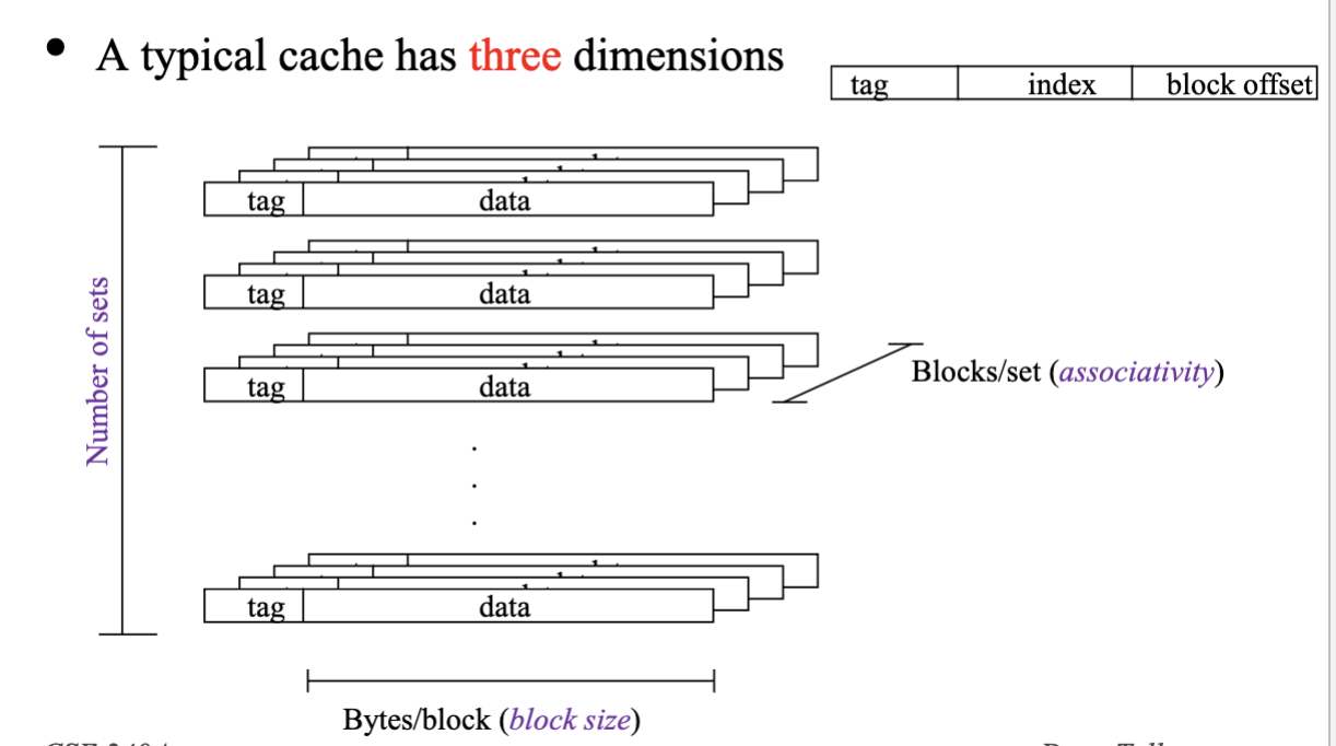 - Quoted cache size always ignore storage for tags, lru, valid, etc. It only accounts for data storage