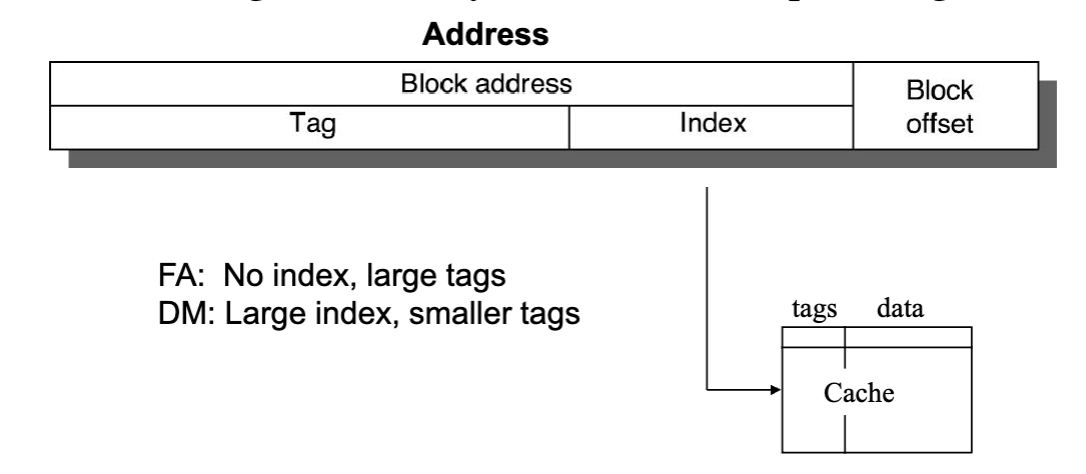 - 64-bit address, and 32 KB cache with 32-byte blocks, 512 sets