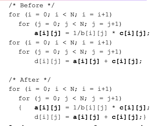 - Loop fusion