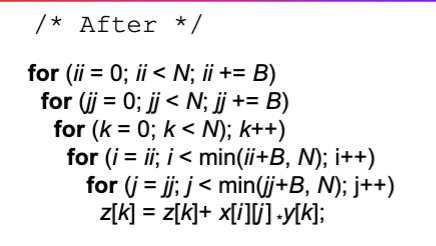 - Improve temporal locality by accessing “blocks” of data repeatedly vs going down whole columns or rows