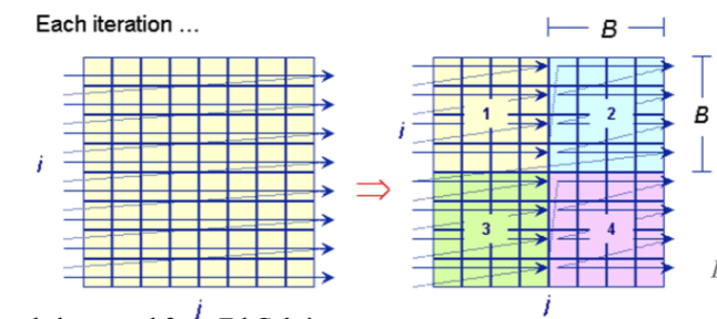 - The idea is to partition the big matrix into smaller blocks that can fit into cache to maintain