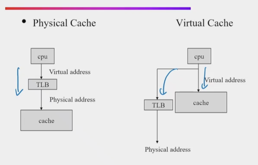 - Every time process is switched logically, must flush the cache (invalidate)