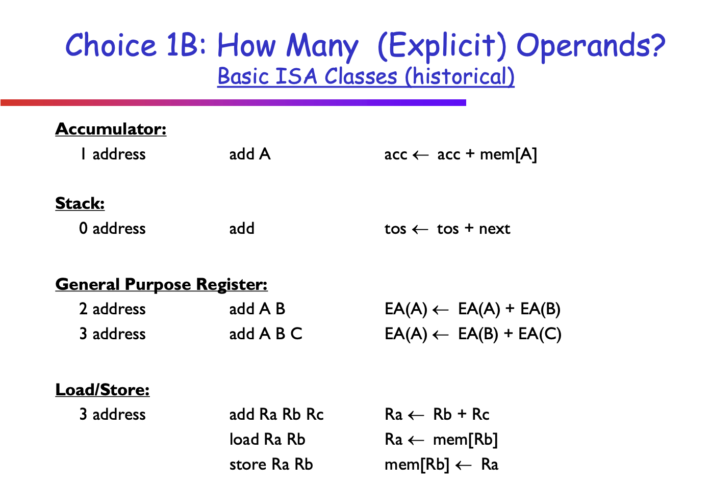 - There are a fair number of design choices even between similar (eg, RISC) ISAs