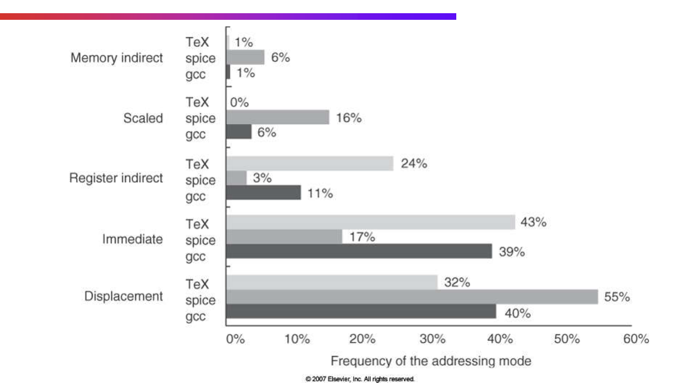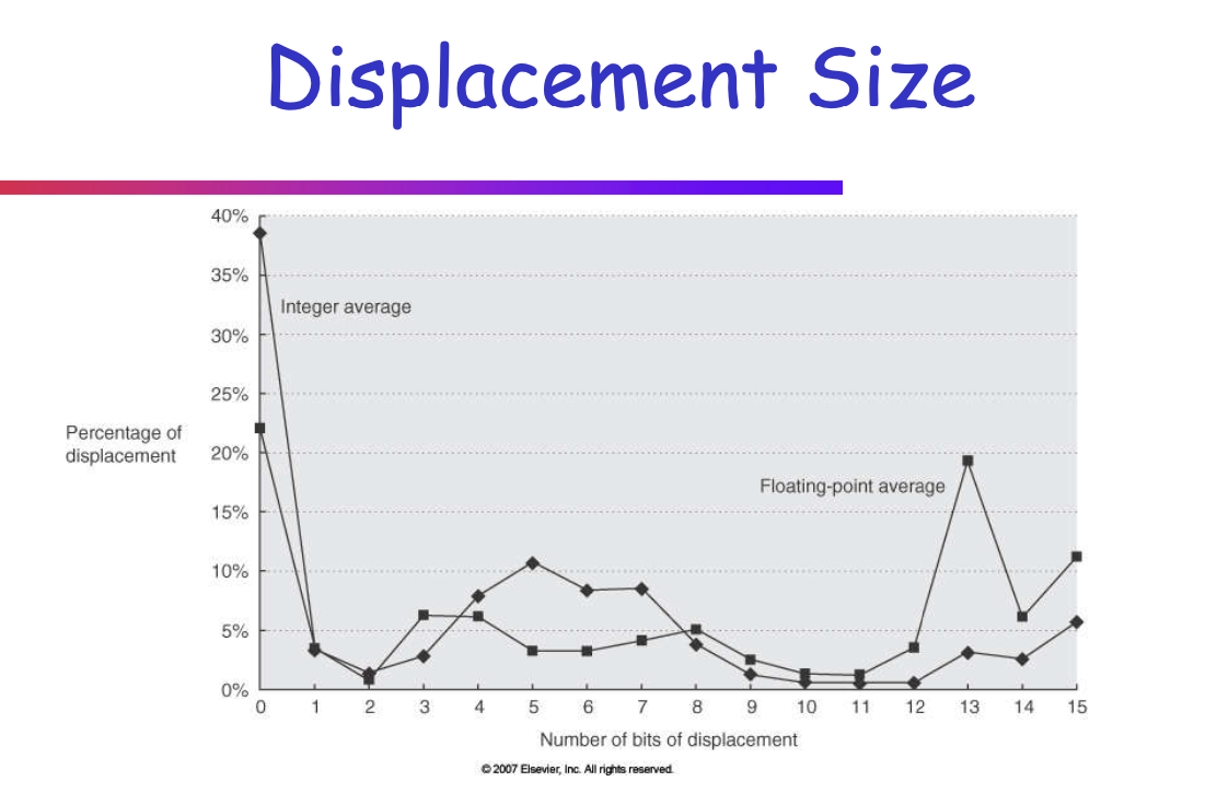 - Displacement addressing mode handles the vast majority of memory reference needs.