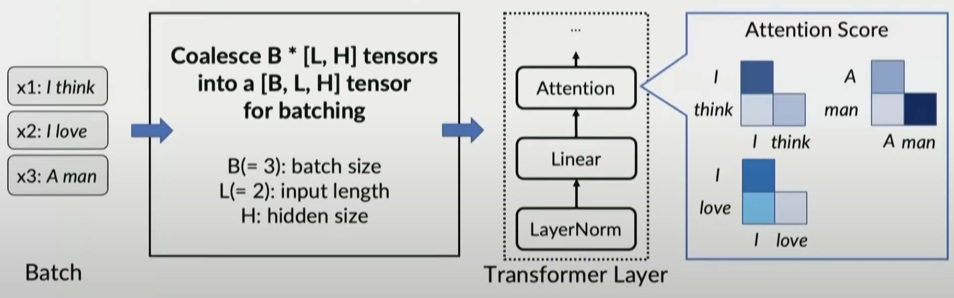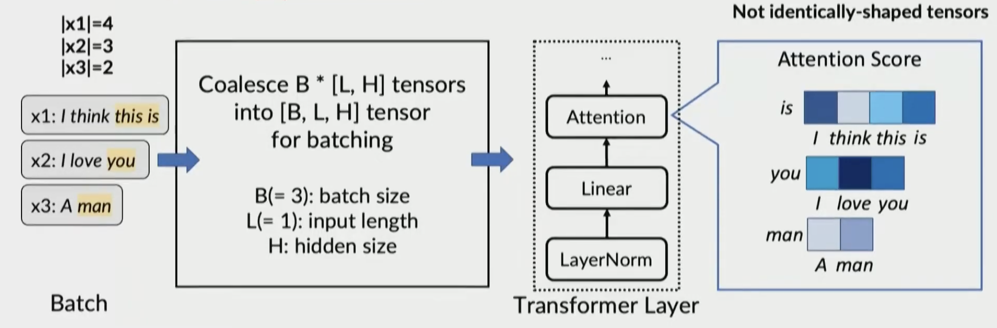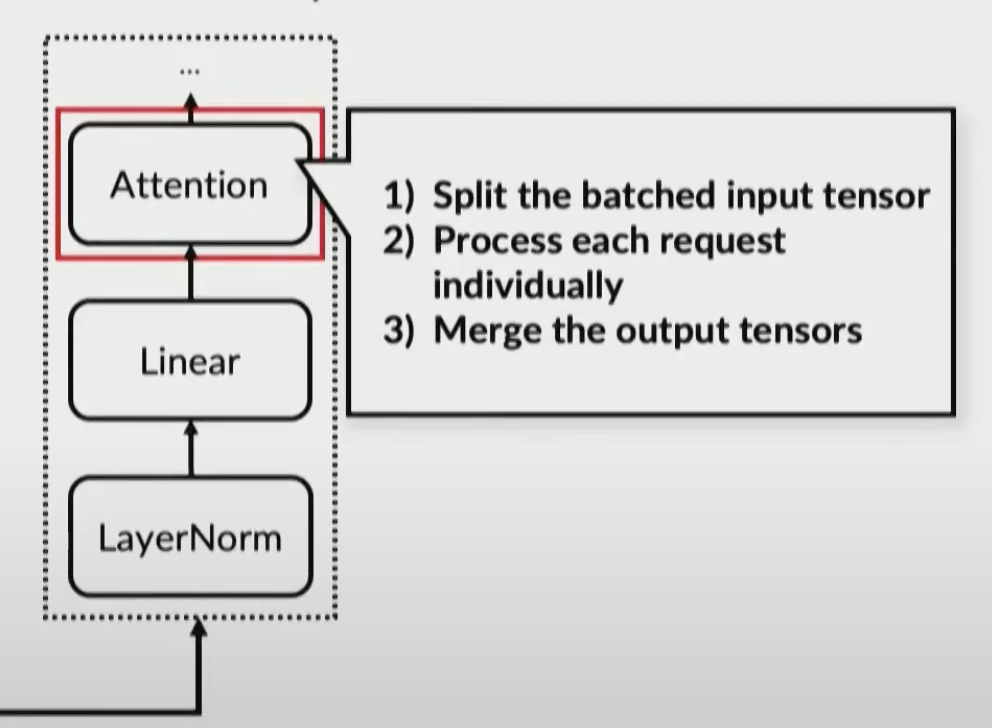 - In addition, to apply batching and iteration-level scheduling to a Transformer model at the same time, we suggest selective batching, which applies batching only to a selected set of operations.
