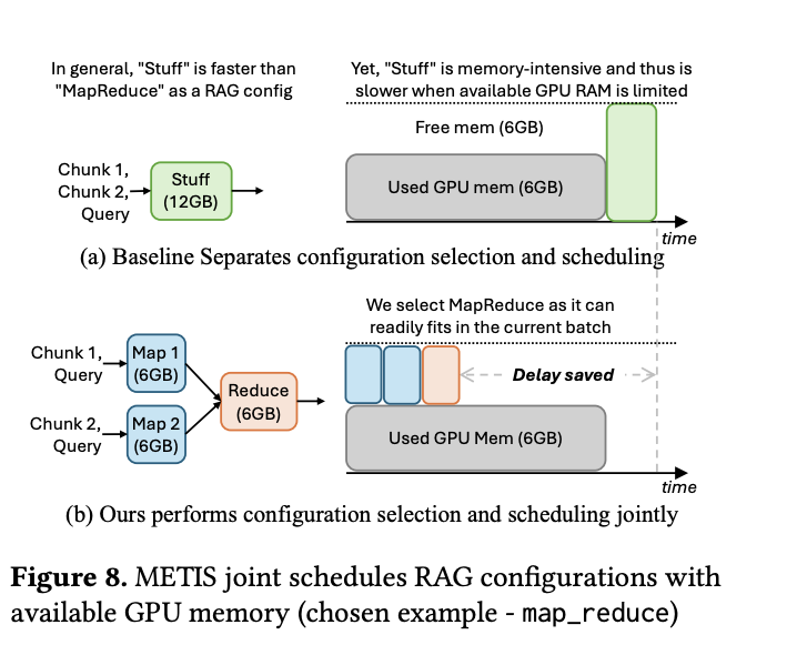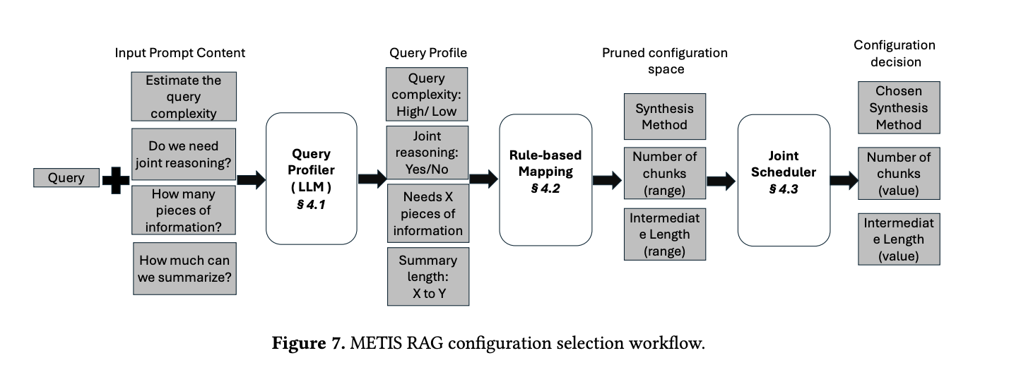 - METIS reduces the RAG response delays by jointly deciding the per-query configuration and query scheduling based on available resources