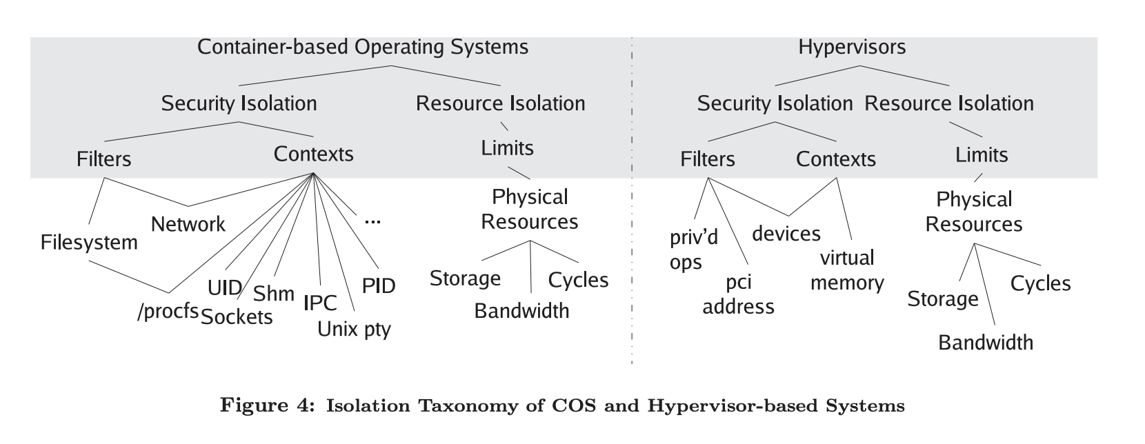 - But when each VM is running the same kernel and similar OS distributions, the degree of isolation offered by the hypervisors comes at the cost of the efficiency relative to running all applications on a single kernel