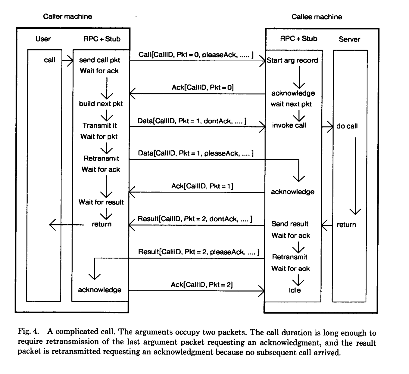 - While waiting, the caller periodically sends a probe packet to the callee which the callee is supposed to acknowledge. Health check with graduate increase between iterations If arguments or results are too large to fit in a single packet, they are sent in multiple packets with each but the last requesting explicit acknowledgment