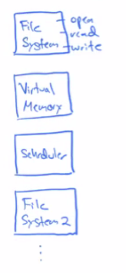 - Unix - user vs kernel mode, address space, everything accessible by one user