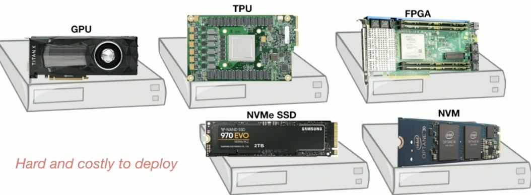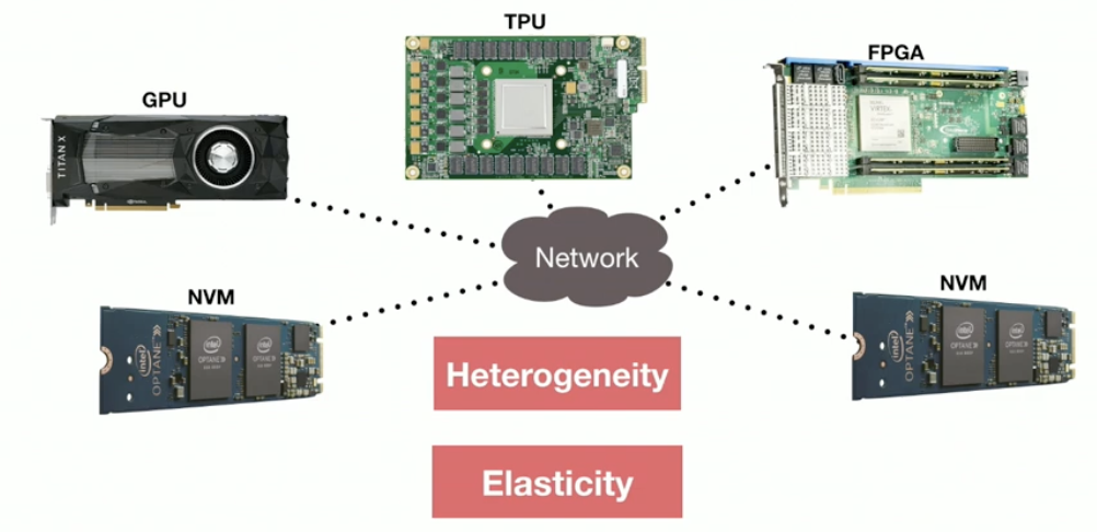- modern datacenters host increasing heterogeneous hardware. However, designing new hardware that can fit into monolithic servers and deploying them in datacenters is painful and cost-ineffective